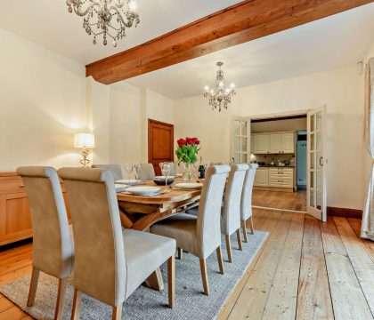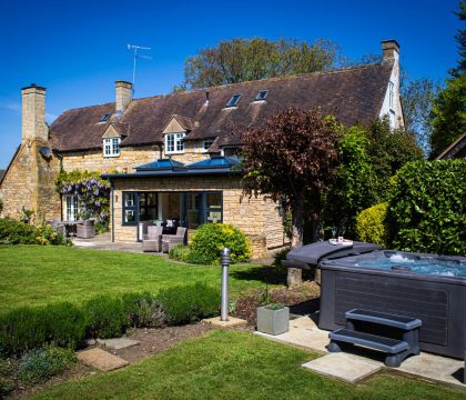 Manor House is a grand Cotswold holiday cottage near Broadway which sleeps ten guests, in five spacious bedrooms, with five bathrooms. This period property is laid out over three floors with generously sized bedrooms, ample bathrooms and multiple living spaces including a cosy snug. The large holiday home is steeped in history with parts dating back to the circa 1572 and is mentioned in the Doomsday book. It has been tastefully renovated to showcase this with exposed Cotswold stone walls, inglenook fireplace with wood burner and wooden beams throughout. The most recent addition of the orangery adds a wonderful modern touch, allowing guests to enjoy the stunning garden all year round. Set against the backdrop of the village church, the garden is truly special with a hot tub, carp pond and traditional well. This characterful property is a fantastic family friendly retreat to gather with loved ones to enjoy the North Cotswolds.